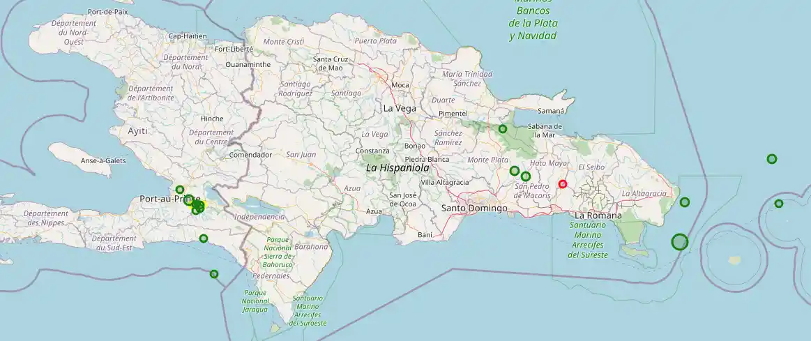 - 26 de los sismos registrados ocurrieron en las inmediaciones de Jimaní, al oeste de República Dominicana, con magnitudes entre 2.0 y 3.9 y profundidades que oscilaron entre 12 km y 27 km.