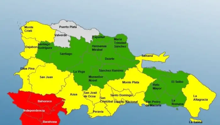 Las cuatro provincias que mantienen el máximo nivel de riesgo son Barahona, Pedernales, Independencia y Bahoruco.