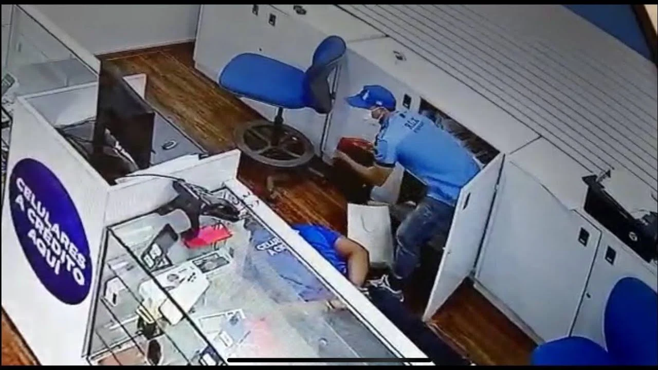El delincuente de llevó de la tienda de Braulio Celulares dinero y más de 20 equipos