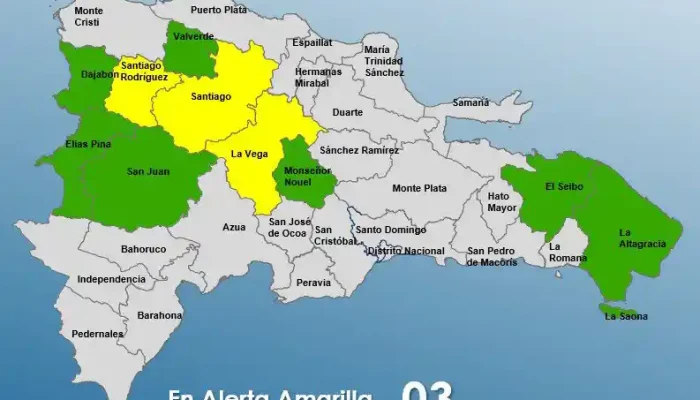 La alerta amarilla es para Santiago Rodríguez, La Vega y Santiago
