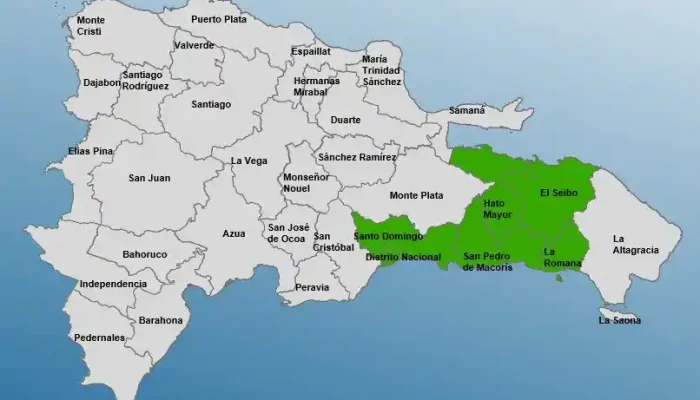 El Centro de Operaciones de Emergencias (COE) coloc贸 este s谩bado en alerta verde a seis provincias y al Distrito Nacional, debido a los efectos de una onda tropical que, en interacci贸n con una vaguada, generar谩 aguaceros con tormentas el茅ctricas desde el mediod铆a hasta primeras horas de la noche, seg煤n inform贸 la Instituto Dominicano de Meteorolog铆a (Indomet).