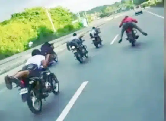 SANTIAGO.-La Policía Nacional apresó ayer a cuatro personas sorprendidas en una competencia ilegal de motocicletas, en la carretera principal de la comunidad Hato del Medio, en el municipio de Guayubín, en Montecristi.