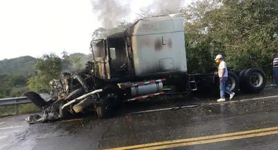 Los vehículos involucrados en el accidente fueron una camioneta Mitsubishi L200, placa L125985 verde y gris, y el cabezote placa L308511.