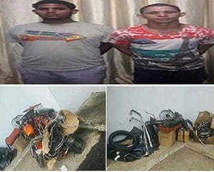 Además, varios sacos, cajas y cubetas llenas de piezas y herramientas de motocicletas desmanteladas y que eran obtenidas por estos individuos mediante asaltos a mano armadas que realizaban en distintos sectores de esta ciudad.
