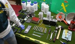 En la operación contra la red de narcotráfico, donde fueron arrestadas diez personas, la Guarda Civil Española desmanteló un laboratorio, ocupó 1,3 kilos de cocaína, seis vehículos y más de 20.000 euros.