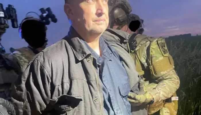 La Oficina del Sheriff del condado de Ramsey publicó el domingo por la noche una fotografía en Facebook que mostraba al sospechoso de 57 años, identificado como Vance Boelter, siendo puesto bajo custodia por la Policía.