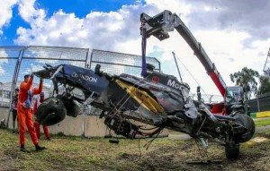 Alonso no estimó la distancia entre los vehículos y chocó contra la rueda trasera de la máquina de Gutiérrez, lo que provocó que el McLaren saliera volando y diera vueltas en el aire hasta estamparse contra una valla de protección. A pesar de que la parte delantera del bólido quedó totalmente destrozada, Alonso salió del accidente aparentemente ileso.