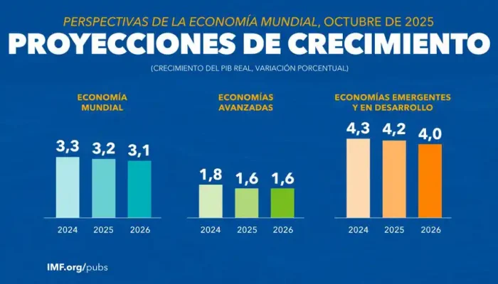 De acuerdo con el informe, se espera que las economías avanzadas crezcan 1,6 por ciento en 2025, mientras que se prevé que las economías emergentes y en desarrollo registren un crecimiento de 4,2 por ciento, un aumento de 0,1 puntos porcentuales en ambas con respecto a las previsiones anteriores.