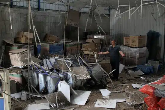 CIUDAD DE GAZA, (Xinhua) — Imagen del 11 de mayo de 2021 de un palestino inspeccionando los daños de un almacén tras los ataques aéreos israelíes, en la Ciudad de Gaza. (Xinhua/Rizek Abdeljawad)