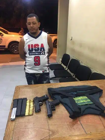 SANTIAGO.- La Policía apresó a un hombre por ocuparle dos armas de fuego sin documentos, cuatro cargadores para pistolas y un chaleco antibalas, tras retener un vehículo durante una intervención realizada en horario de toque de queda, en el sector Monte Adentro, Licey al Medio de esta provincia.