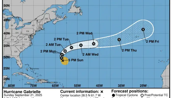 Huracán Gabrielle se fortalece en el Atlántico y se dirige al este de Bermudas