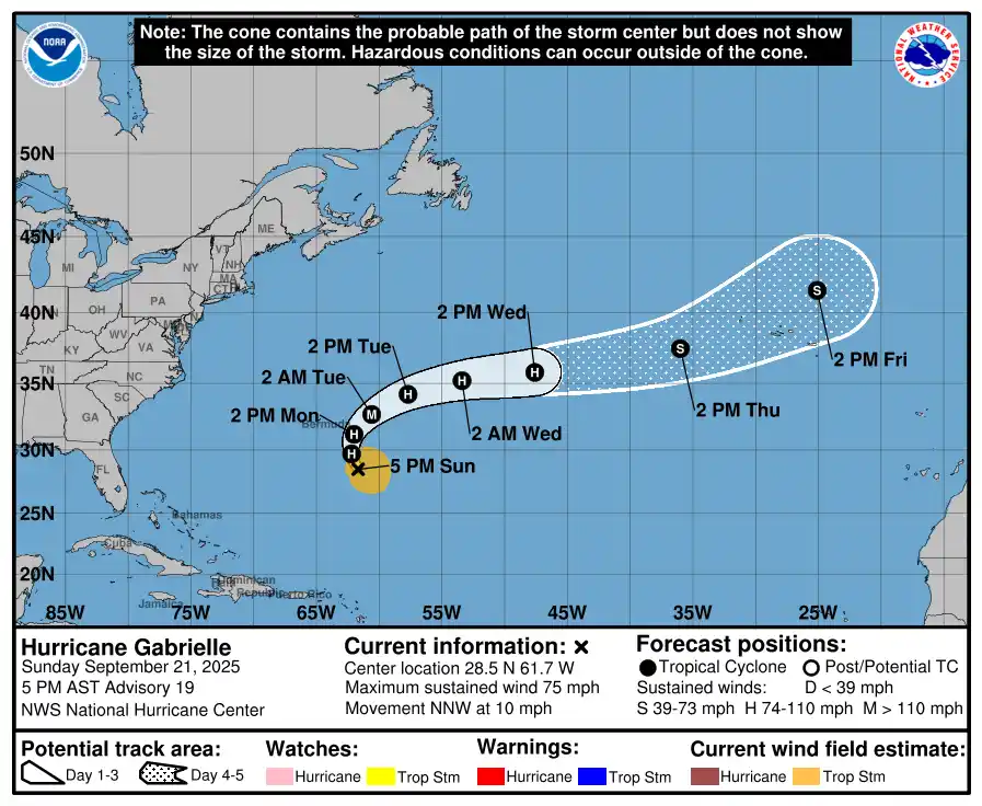 - Se espera intensificación rápida y Gabrielle podría convertirse en gran huracán a inicios de la semana.