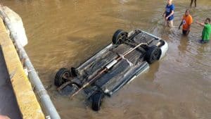 El vehículo accidentado es un Toyota, gris, placa A337333 y los organismos de socorro necesitaron utilizar una pala mecánica para poder sacarlo del agua.