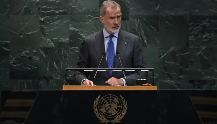 NACIONES UNIDAS, 24 septiembre, 2025 (Xinhua) — El rey Felipe VI de España pronuncia un discurso durante el debate general del 80º período de sesiones de la Asamblea General de las Naciones Unidas, en la sede de la Organización de las Naciones Unidas, en Nueva York, el 24 de septiembre de 2025. (Xinhua/Li Rui)