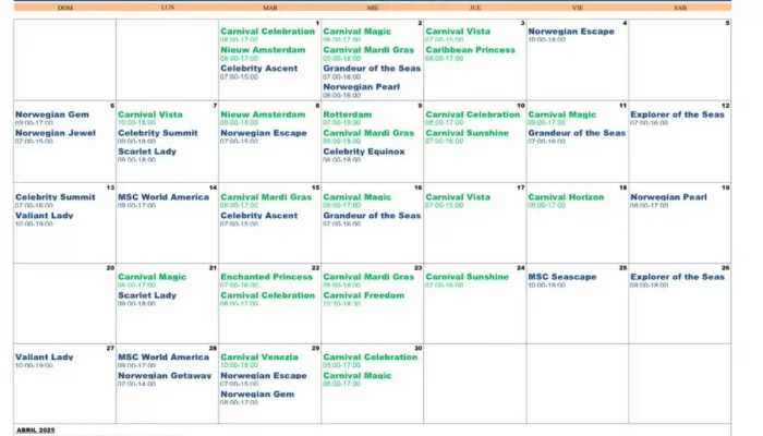 Durante el mes, Puerto Plata recibirá embarcaciones de compañías líderes en la industria como Carnival Cruise Line, Norwegian Cruise Line, MSC Cruises, Celebrity Cruises y Princess Cruises. Este flujo constante de cruceristas reafirma el posicionamiento del destino como una escala estratégica en las rutas del Caribe.