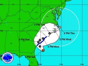 Las autoridades mantienen un aviso de Tormenta Tropical esta en efecto para Savannah River hasta Little River Inlet Carolina del Sur.