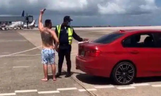 El expediente indica que el canadiense Sebastian Masicotte Lalumierre entró al perímetro de seguridad utilizando para ello un vehículo marca BMW, color rojo, placa A645105, con el cual rompió la puerta y violó los protocolos de seguridad del aeropuerto.