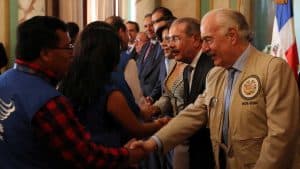 Previamente, el jefe de la misión de observadores de la Organización de Estados Americanos (OEA) y ex presidente de Colombia, Andrés Pastrana, se reunió con el presidente Danilo Medina en su despacho, con quien intercambió sobre diversos temas de interés.